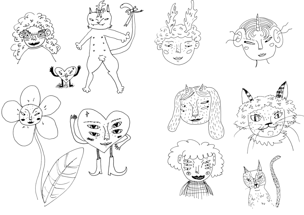 This is a collection of drawings from my sketchbook from 2023–4. Inside you'll find self portraits, anthropomorphic animals, strange creatures, and more.